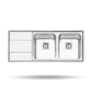 این مدل سینک دارای دو لگن بزرگ به عمق 20 سانتی متر بوده و به شکل مستطیلی و در ابعاد 1200 میلی متر طول و 530 میلی متر عرض است. ضخامت ورق سینک توکار ایلیا استیل یک میلی متر بوده و شامل یک تخته برش، جای مایع و سبد آبچکان می باشد.